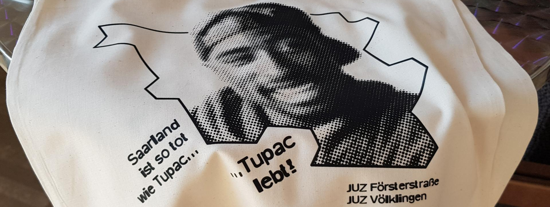 Um Aufmerksamkeit zu erregen, hatten die Jugendlichen eine klasse Idee. Eine Jutebeutel mit dem Aufdruck: "Das Saarland ist so tot wie Tupac". "Tupac lebt". Ihre Message: Wir sind hier!